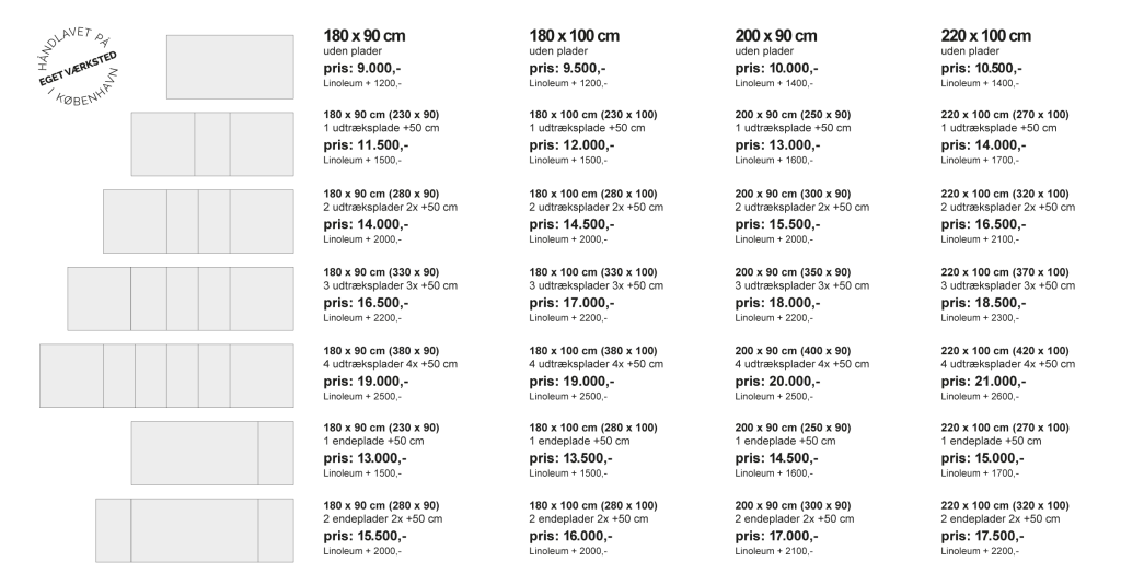 Det er muligt at tilkøbe bordene med tillægsplader, som både kommer i udtræk og endeplader.